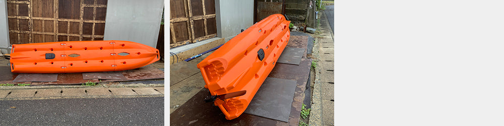 残念ながら、カヤックは重量も重くやわらかい素材の為、多少のへこみやキズ、ロゴのカスレなどはあります。もちろん走りに支障があるようなカヤックは販売致しませんが、実物をご覧になり納得の上ご購入下さい。