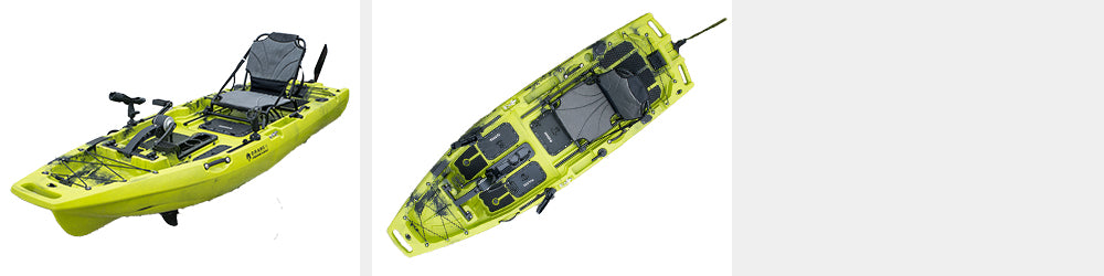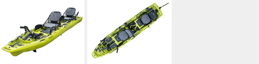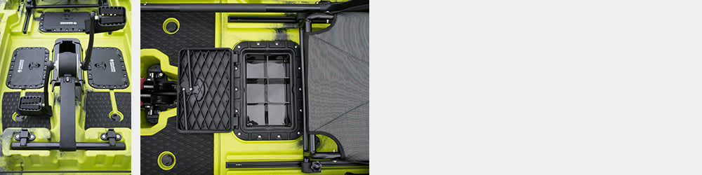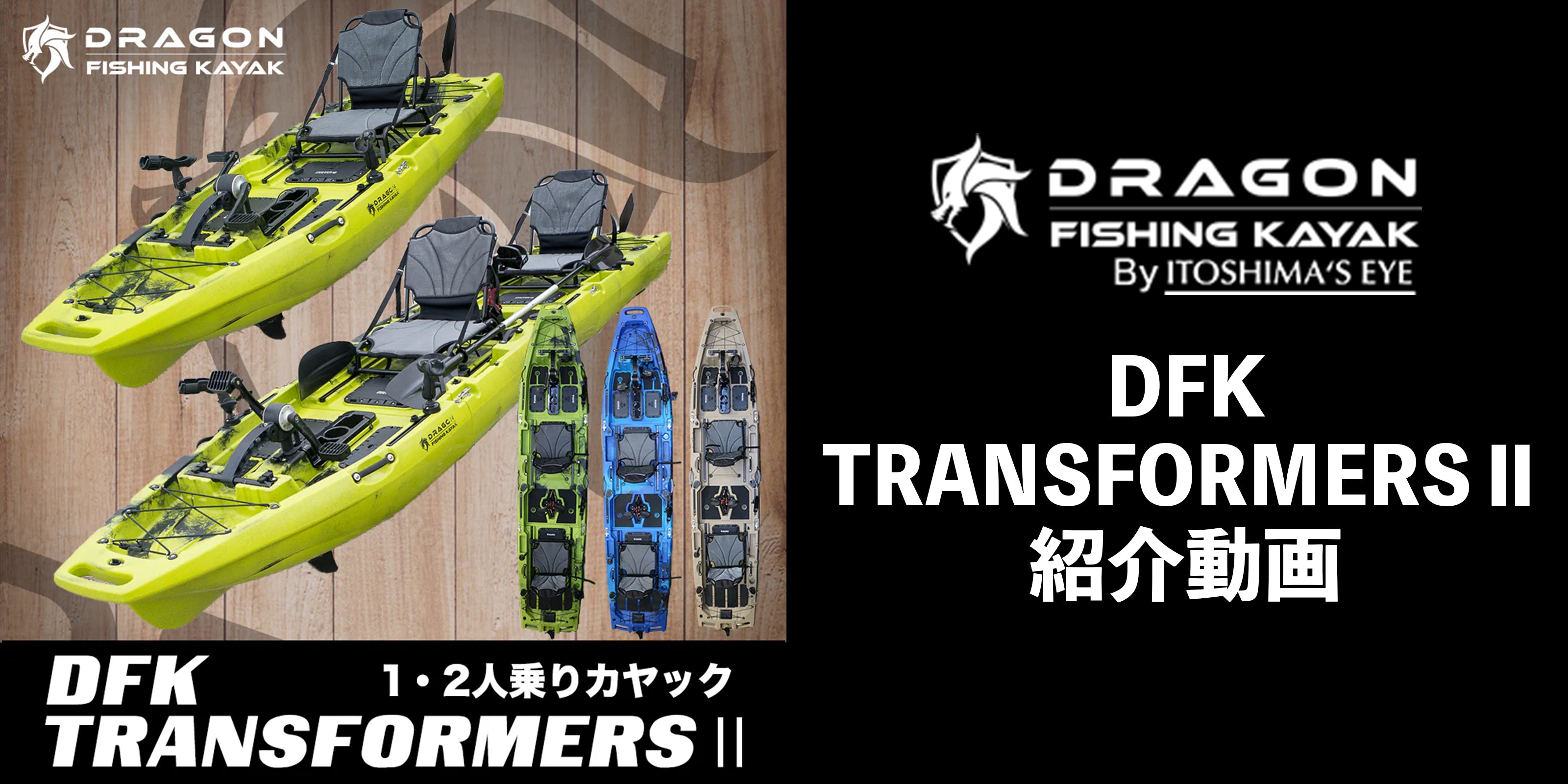 TRANSFORMER Ⅱは、フロントがプロペラドライブ、リアにフィンドライブを装着しているとても新しくユニークな構造となっています どちらも足漕ぎなので長時間の、長距離の釣行も安心ですね